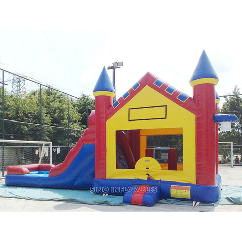 บ้านเป่าลมสำหรับเด็กบ้านเด้งเป่าลมพร้อมสไลเดอร์ทำจากผ้าใบกันน้ำทำจากพีวีซีไร้ตะกั่วใช้ในเชิงพาณิชย์ใช้กลางแจ้งใช้ประชุมกับ EN14960