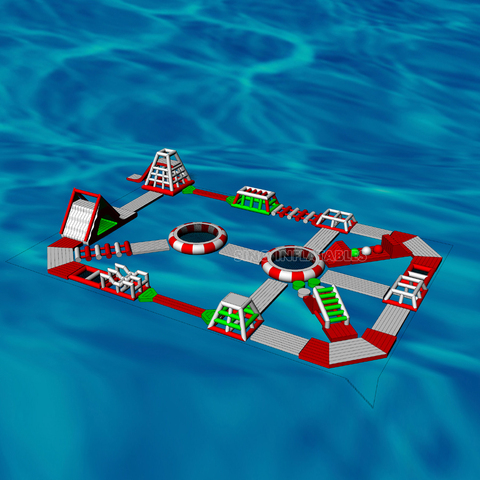 สวนน้ำเป่าลมลอยน้ำขนาดยักษ์สำหรับผู้ใหญ่และวัยรุ่นกิจกรรมสนามเด็กเล่นน้ำขนาด35x35ม.