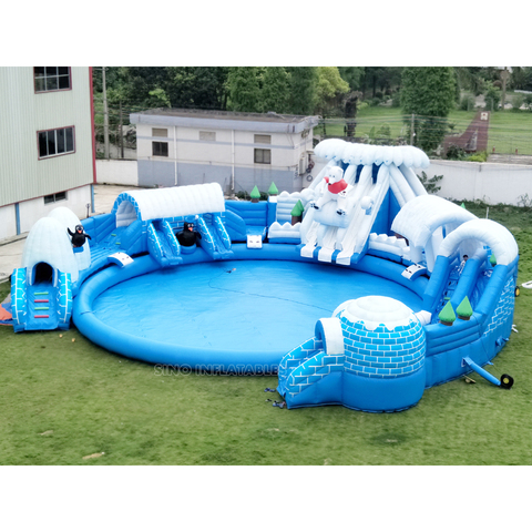 เส้นผ่านศูนย์กลาง15เมตรค่ะ Snow N Ice สวนน้ำทำให้พองขนาดยักษ์บนบกพร้อมสระน้ำเป่าลมขนาดใหญ่สำหรับเด็กและผู้ใหญ่