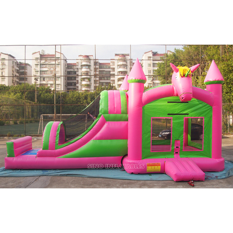 6x5 मीटर कस्टम डिजाइन inflatable यूनिकॉर्न बाउंसी कैसल चीन के बच्चों के लिए स्लाइड के साथ स्लाइड के साथ
